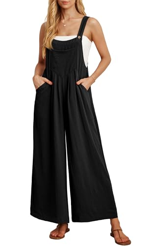 Women Loose Fit Jumpsuit Wide Leg Overalls Casual Button Suspender Trousers Summer Street Outfit