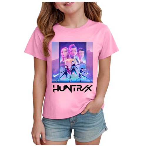 Kpop Demon T Shirts for Girls Christmas Crewneck Cute Cartoon Comics Graphic Funny Tee Kids Pink Short Sleeve Shirts