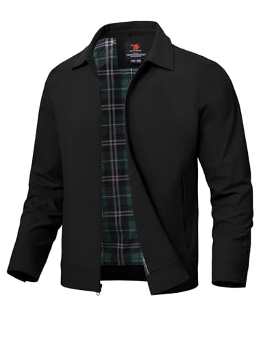 Bomber Jacket for Men Casual Full Zip Ribbed Collar Cuff Hem Lightweight Outerwear Smooth Fabric Side Pockets Relaxed Fit