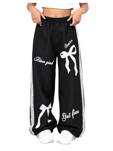 Girls Wide Leg Sweatpants Elastic Waist Baggy Sweat Pants Solid Relaxed Fit Straight Jogger with Pocket Preppy School Uniform