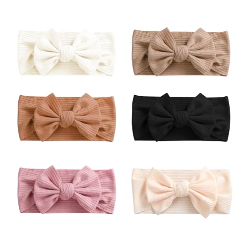 6PCS Solid Color Bow Headbands for Girls Soft Elastic Hair Bands, Cute Hair Bows for Kids, Perfect Christmas Gifts & Stocking Stuffers for Girls (6pcs)