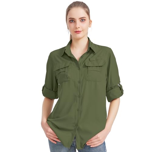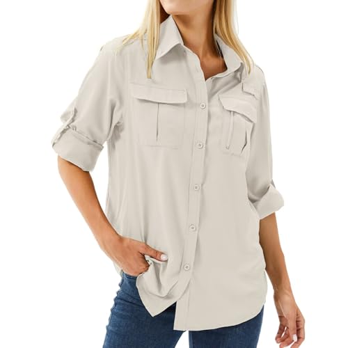 Women's UPF 50+ UV Sun Protection Safari Shirt Long Sleeve Outdoor Cool Quick Dry Fishing Hiking Gardening Shirts