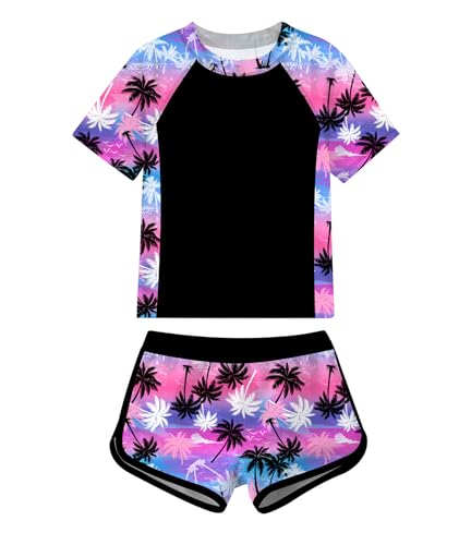 Girls Rash Guard Swimsuits 2 Piece Bathing Suit UPF 50+ Long Sleeve Swimwear with Swim Short Summer Swimming Suits