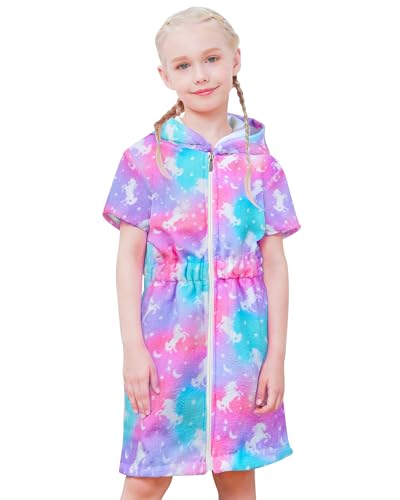 Girls Swim Cover Up Kids Swimsuit Coverup Terr𝐲 Zip-Up Beach Bathing Suit Wra𝐩s with Sunglasses Hooded Baby Girls