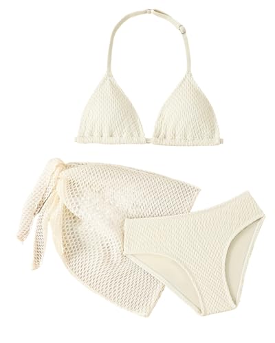 Xumplo Girls Swimsuits for Teen Bikinis Set with Cover-up Mesh Halter Top + Buttoms Swimming Suits Vacation Beachwear