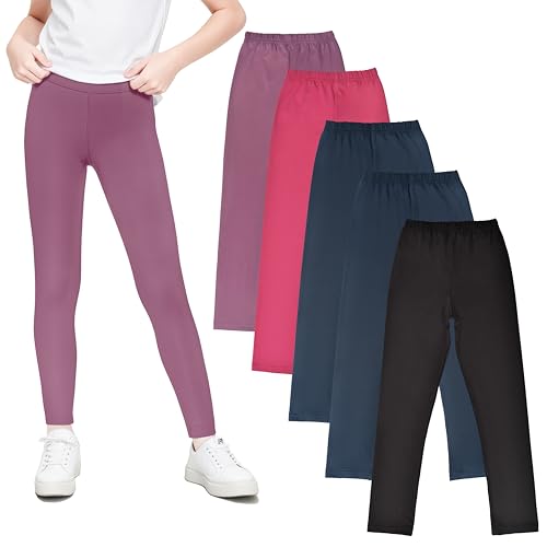 3-Piece Girls' Cotton Leggings, Solid Color Soft Sports Leggings, Suitable for School, Dance, Daily Wear, Sizes 2-9Y