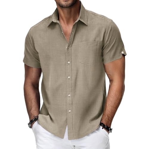 Mens Cotton Linen Shirts Short Sleeve Button Down Shirt Boho Summer Beach Shirts Comfy Hawaiian Shirts Resort Wear