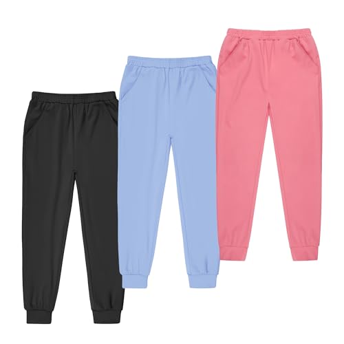 NIOIPXA Girls Sweatpants 3-Pack | Kids Jogger Pants with Drawstring & Pockets | Soft Casual Pull On Pants for Toddler & Girls
