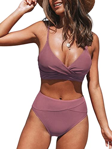 CUPSHE Women's Bikini Sets Two Piece Swimsuit V Wire Underwire Push Up Bathing Suit Mid Rise Back Hook Adjustable Straps