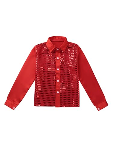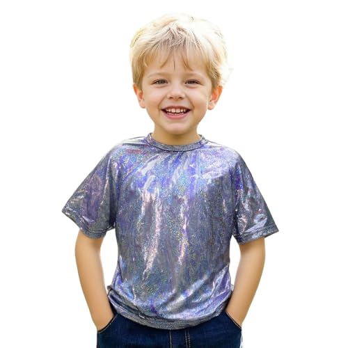 Hansber Youth Boys Sparkly Figure Skating Shirts Ballet Dance Tops Gymnastics Costume for Latin Jazz Performance