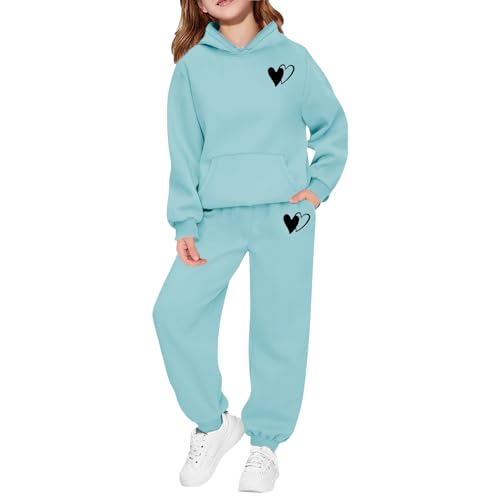 Girls 2 Piece Outfits Kids Casual Athletic Sweatsuit Teens Long Sleeve Crop Top Wide Leg Pants Tracksuit Cute Plain