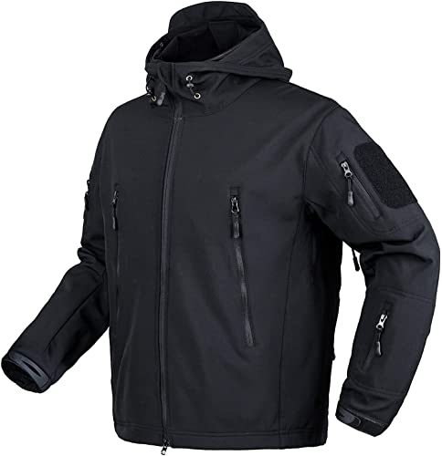 Men's Softshell Jacket Hooded Coat with Zipper Pockets Waterproof Windbreaker Rain Jacket for Hiking Outdoor