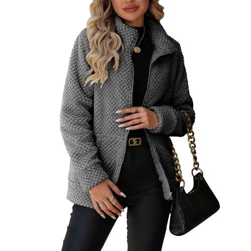 Womens Fuzzy Jacket Coat Pullover Sherpa Sweatshirt Long Sleeve Fall Winter Jacket with Pockets Outerwear