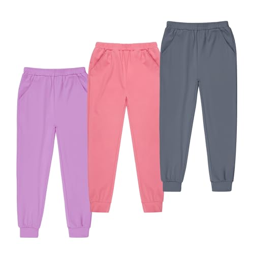NIOIPXA Girls Sweatpants 3-Pack | Kids Jogger Pants with Drawstring & Pockets | Soft Casual Pull On Pants for Toddler & Girls