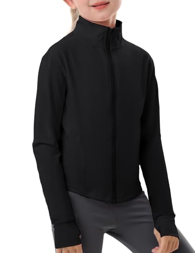 ACTCHIC Girls Zip Up Jacket Athletic Workout Track Gym Yoga Lightweight Jacket with Thumb Holes