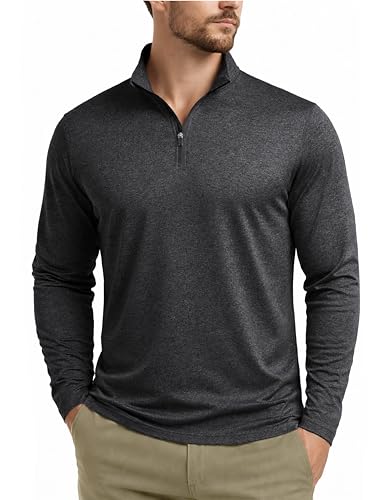 Mens Quarter Zip Pullover Long Sleeve Athletic Shirt Quick Dry Running Clothes for Workouts
