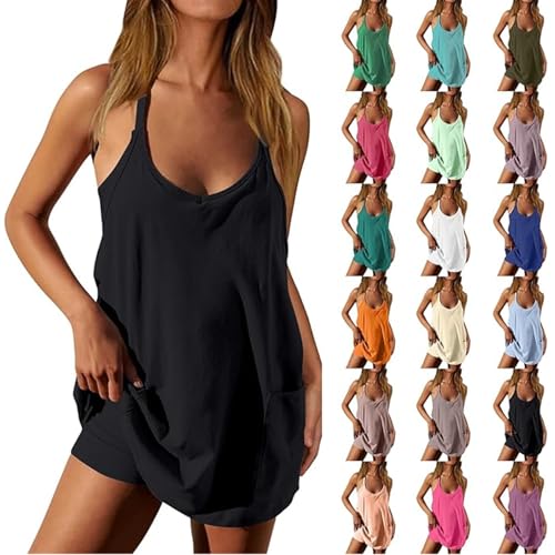 2026 New Athletic Dress for Women, Mini U Neck Sleeveless Built in Shorts with Pockets for Tennis Golf Graduation