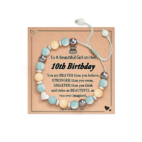 Shelucky Natural Crystal Bracelet 13th 16th Birthday Gifts for Girls - Rose Quartz Moonstone Aquamarine Healing Stones Jewelry with Meaning Card for Daughter Granddaughter