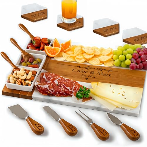 Personalized Charcuterie Board, Marble Cheese Boards for Bridal Shower Gifts, Perfect Housewarming Gifts for Couples, Custom Wedding Gifts, New Home Gift