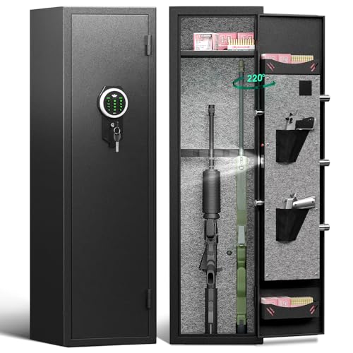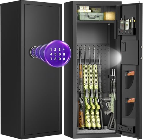 JoanKaren 6 Gun Safe for Rifles and Pistols, Heavy Duty Gun Cabinet with Adjustable Gun Racks and Shelf, Large Digital Electronic Locker for Home Security