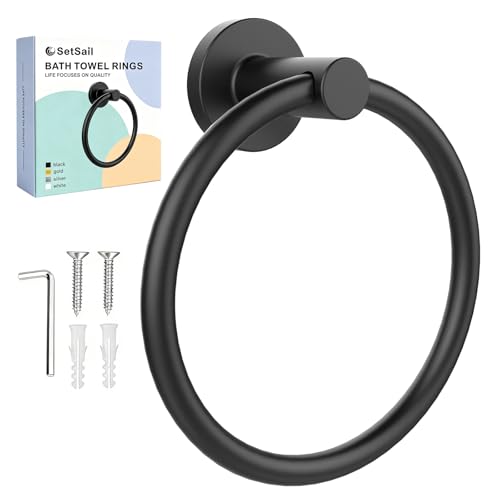TOYANDONA Black Iron Towel Ring for Bathroom Wall Mounted Hand Towel Rack with Scratch-Resistant Finish