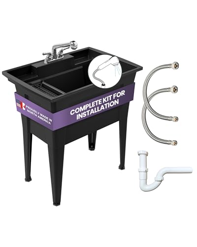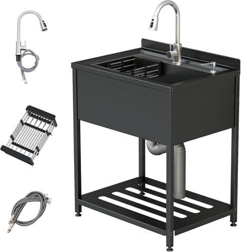 HMOROVEX 21-31In Stainless Stee Utility Sink,Commercial Sink,Free Standing Bathroom Storage Cabinet Laundry Sink Cabinet Pull-Down Faucet,Multi-Use for Laundry,Kitchen,Garage,Black,55 * 45 * 78cm