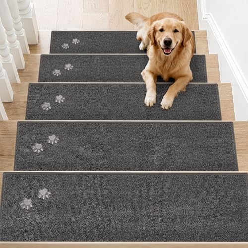 Non-Slip Stair Treads for Elderly & Kids, Dog Paw Print Indoor Stair Treads Carpet for Cafe, B&B, Home Staircase, 7.8" X 30" (10 Pcs)