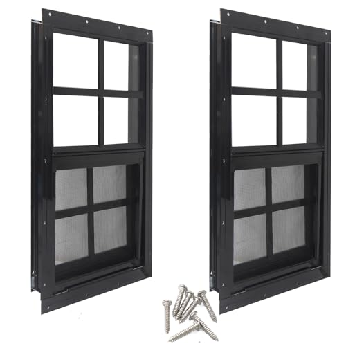 Melkus Shed Windows 10"x23" 2 Pack, Upgraded Sliding Transom Window with Tempered Glass and Screen for Shed, Chicken Coop, Barn, Greenhouse, Garage, Playhouse, Storage Room, Black