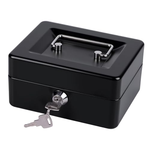Semme Metal Cash Box with Locking Mechanism Tray Secure Portable Cash for Home and Car Usage (Black)
