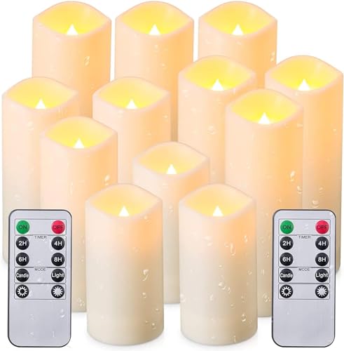 Hoement 12pcs Flameless LED Candle Lights with Button Battery, Plastic Decorative Electric Candle Lamps