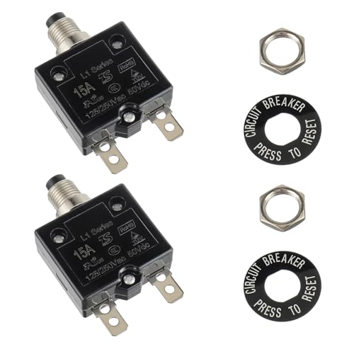 2A Manual Reset Thermal Switch DC Circuit Breaker 125/250VAC 50VDC Overcurrent and Overload Protector for Electrical Circuits with Copper Construction