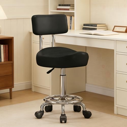 SEWACC Rolling Salon Stool with Wheels for Beauty Salons, Pu Material, Versatile Use, Stylish Design for Random Color