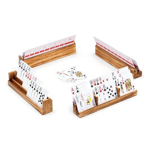 Kindollar Card Holders for Playing Cards, Wooden 4Pcs Playing Card Holder for Adults, Seniors, Curved Little Hands Game Card Holder, 13 x 1.8 x 1.8 Inch, Brown