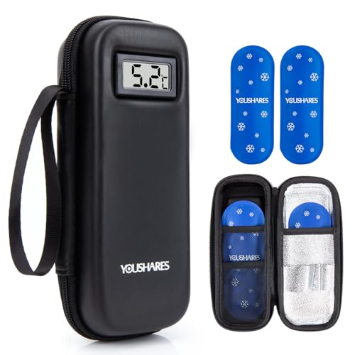 LengKe EVA Insulated Cooler Travel Case for Mounjaro Injector Pens, 2 TSA Approved Ice Pack, Real-Time Temperature Display, Medication Cooler for Travel & Daily Use