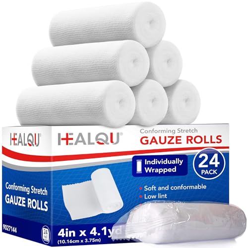 Gauze Rolls 3'' x 4.1yd Conforming Stretch Gauze Bandages Breathable Gauze Wrap Individually Wrapped First Aid Supplies for Wound Dressing Support 24 Pack