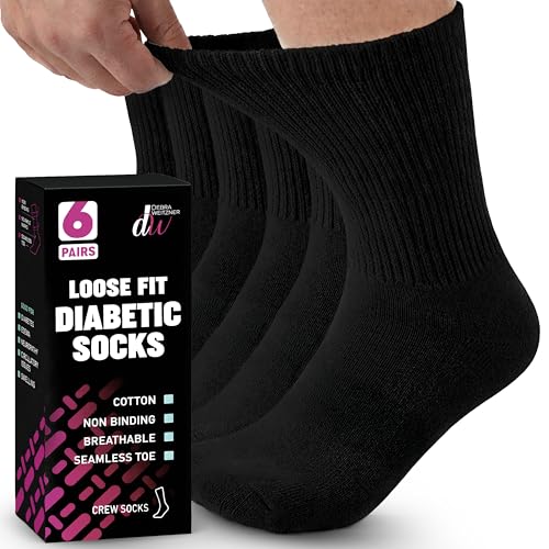 3 Pair Diabetic Socks for Men and Women- Non-Binding, Loose Fit, Wide Calf, Cushioned Cotton Crew for Circulation