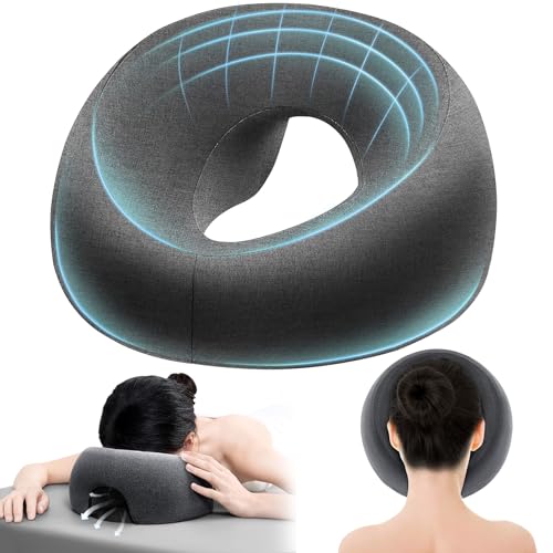 Face Down Pillow for Bed, Massage Headrest Face Pillow for Table, BBL Pillow After Surgery Post-Eye Surgery Recovery, Ergonomic Face Cradle Pillow for Stomach Sleeping and Spa Salon (White Blue)
