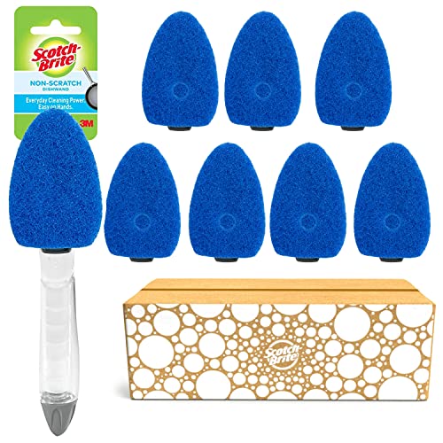 Comfort Grip Soap Dispensing Kitchen Scrub, Steel Wool Scrubber with Handle, Dish Brush with Soap Dispenser,for Cleaning Dishes, Pots, Pans & Sinks (Grey*10pcs Replacement Heads)