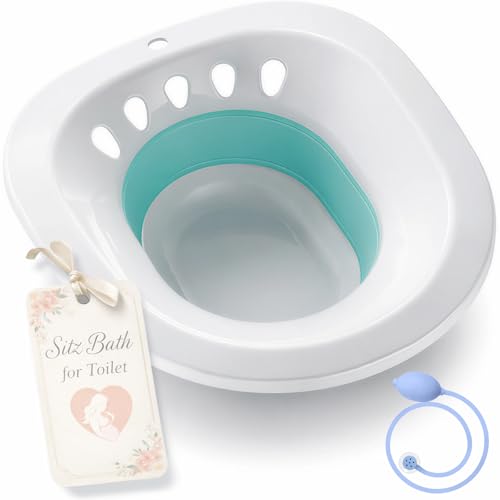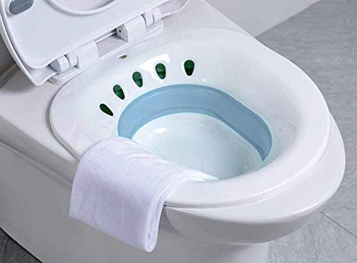 TOPINCN Sitz Bath for Toilet Seat Postpartum and Hemorrhoid Care, Universal Squat Free Toilet Bath Seat Basin with Flusher for Elderly and Limited Mobility (Blue)