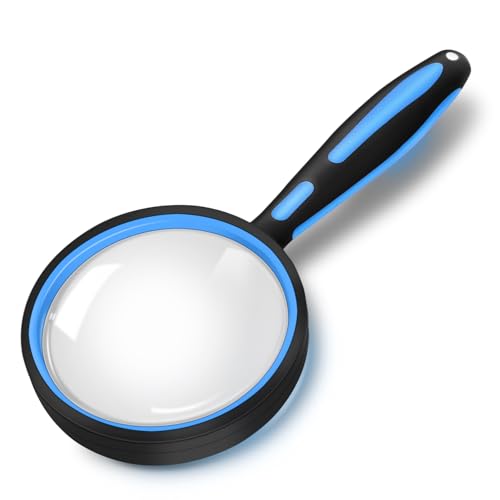 UEYGHEP 1 PCS Candy AS-SEEN-ON-TV Reading Magnifying Glass and Light to See Pages 3X Bigger, Optical Grade, Anti-Glare Black