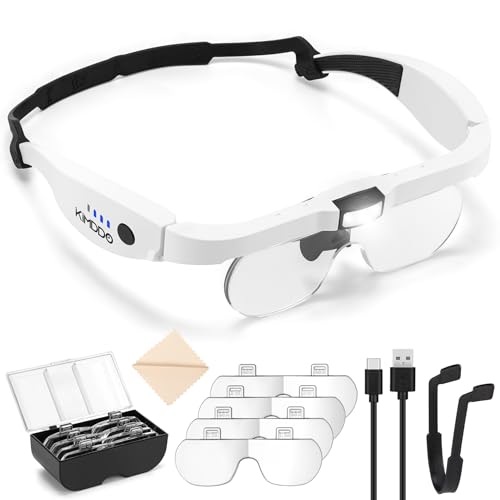 Head Mounted Magnifier, Adjustable LED Light 5X Magnifying Glasses with U Shape Notch for Reading Craft Jewelry Repair, Stainless Steel Frame and Rotatable Lens