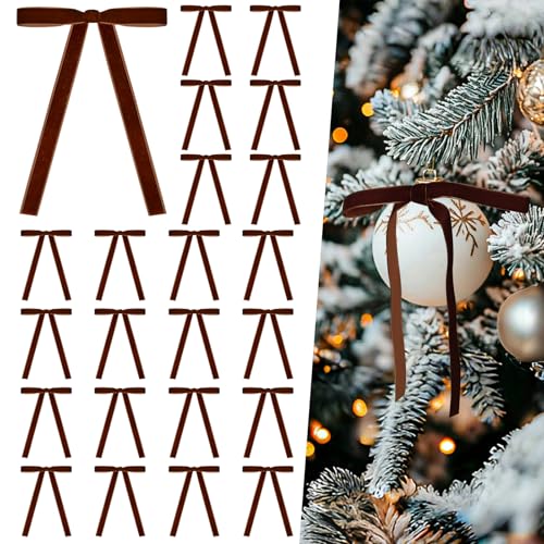 NEBURORA 32 Pcs Velvet Bow Christmas Ornaments 5x7 Inch Vintage Dark Red Velvet Ribbon Bows for Christmas Tree Wreath Indoor Holiday Home Gift Box Decoration
