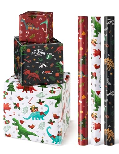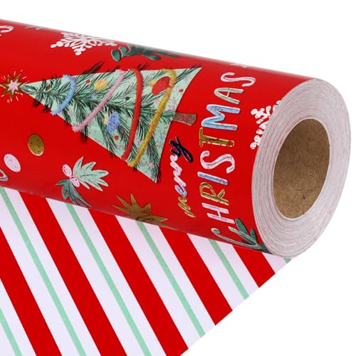 ENFANTRY Christmas Wrapping paper Rolls,3 Rolls Red and Green Xmas Wrapping Paper, Gift Wrapping Paper Christmas Bundle,Xmas tree Santa for Chrimas, Birthday, New Year, Valentines, Wedding, Holiday Deco, DIY