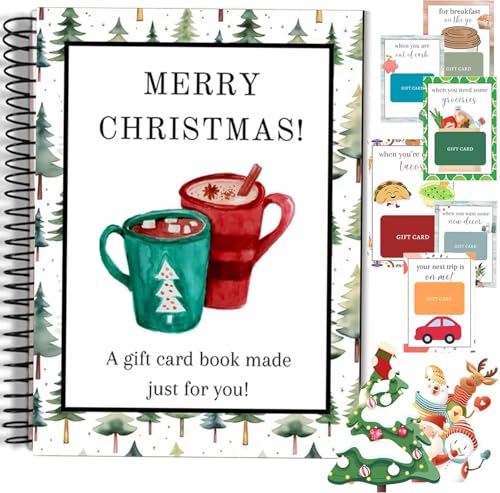 Christmas Gift Card Book, 7x5 Inches Spiral Bound DIY Merry Christmas Gift Card Book Holder, Xmas Gift Card for College Survival Booklet for Family Friends Classmates - 38-page Cups