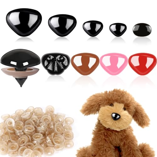 PH PandaHall 400pcs Black Safety Nose, 2 Sizes Stuffed Animal Noses Amigurumi Triangle Safety Nose Bulk Resin Craft Noses with Washer for Crochet Plush Animals Amigurumi Puppet Teddy Bear