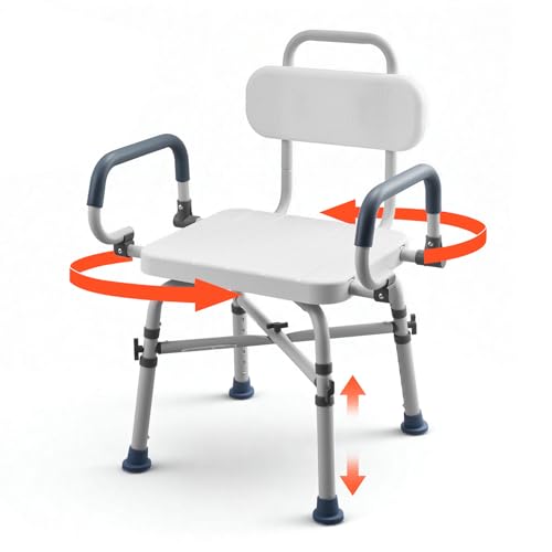 VEVOR Swivel Shower Chair with Arms and Back, 500 lbs Heavy Duty Bench Seat for Inside Shower Stall and Bathtub, Height Adjustable Bathroom Bath Tub Seat for Adults, Seniors, Elderly and Disabled