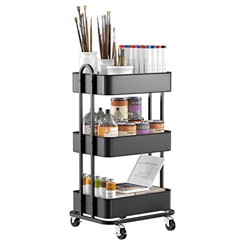3-Tier Rolling Utility Cart, Storage Cart on Wheels, RollingCart Organizer UtilityCart, 69x33x22cm Snack Carts, Book Carts Movable Storage Organizer, Multi Storages Trolley for Living Room