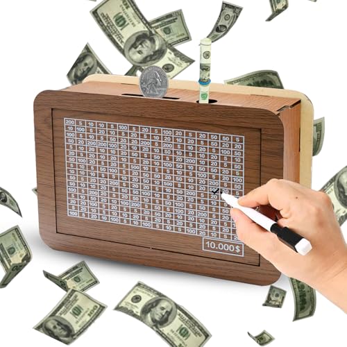 Cash Vault Wooden Savings Box 10000, 2026 New 10000 Savings Challenge Box, Wooden Money Saving Box Money Box with Counter Target and Numbers for 3-12 Year Old Boys & Girls (5000)
