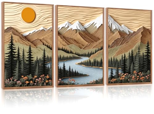 Landscape Wall Art Cottage Lake Forest Canvas Print Nature Scenery Picture Framed Rustic Countryside Artwork for Living Room Bedroom Kitchen Home Decor Ready to Hang(16"x24")