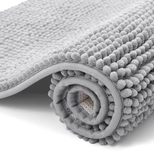 Round Bathroom Mat, 24 Inch, Soft Chenille, Ultra Absorbent, 100% Cotton Backing (Grey)